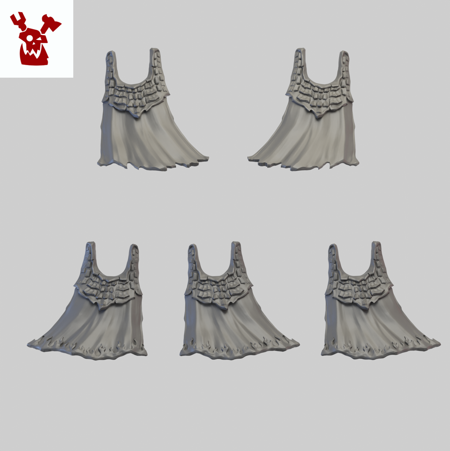 5 x 3D resin printed Fire Dragon cloaks, for tabletop wargaming.